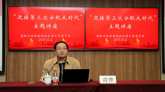 11月2日,由浙江省銀行業(yè)協(xié)會信托公司工作委員會主辦、公司承辦的“迎接第三次分配大時代”專題講座在杭州圓滿落幕。浙江銀保監(jiān)局副局長葉慧霖、浙江大學(xué)公共管理學(xué)院教授苗青、省稅務(wù)局、浙江銀保監(jiān)局信托處、中建投信托、杭工商信托、萬向信托、浙金信托等機構(gòu)代表出席會議。會議由公司黨委書記、董事長余艷梅主持。